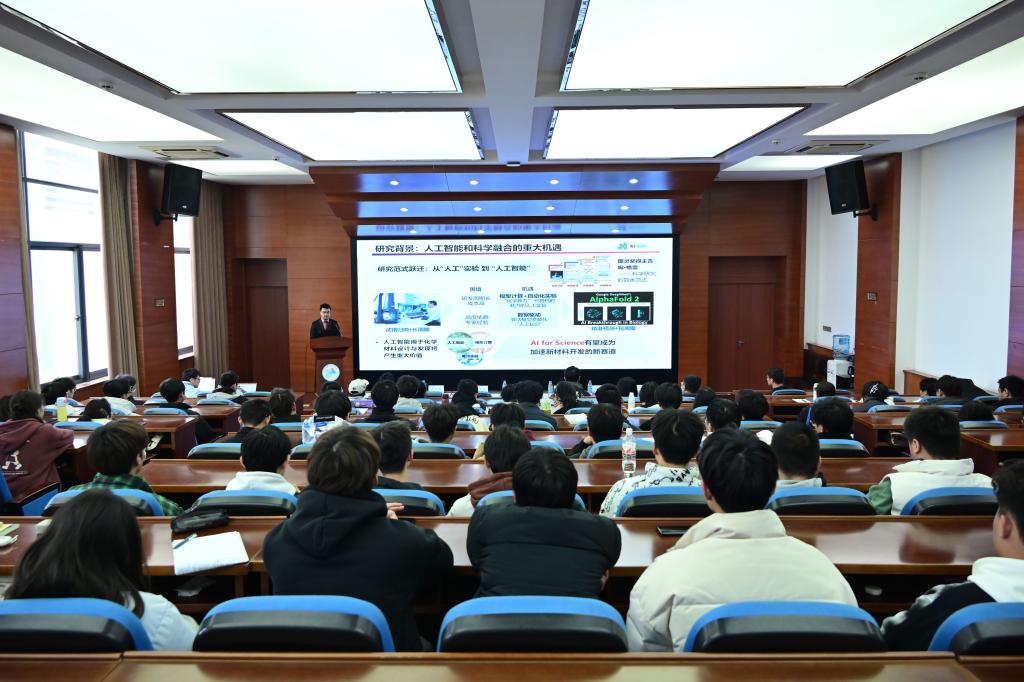 仪式上,温波副校长为李佳礼研究员颁发《人工智能导论》课程校外指导老师聘书,李佳礼研究员从人工智能发展背景、理论基础、环境应用案例给同学们带来了精彩第一课。