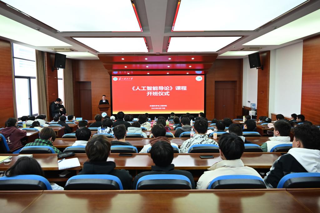 《人工智能导论》课程开班仪式在二楼报告厅举行。校党委常委、副校长温波,国家级海外引进高层次人才、中国科学院生态环境研究中心研究员李佳礼,教务处副处长王军,GG扑克