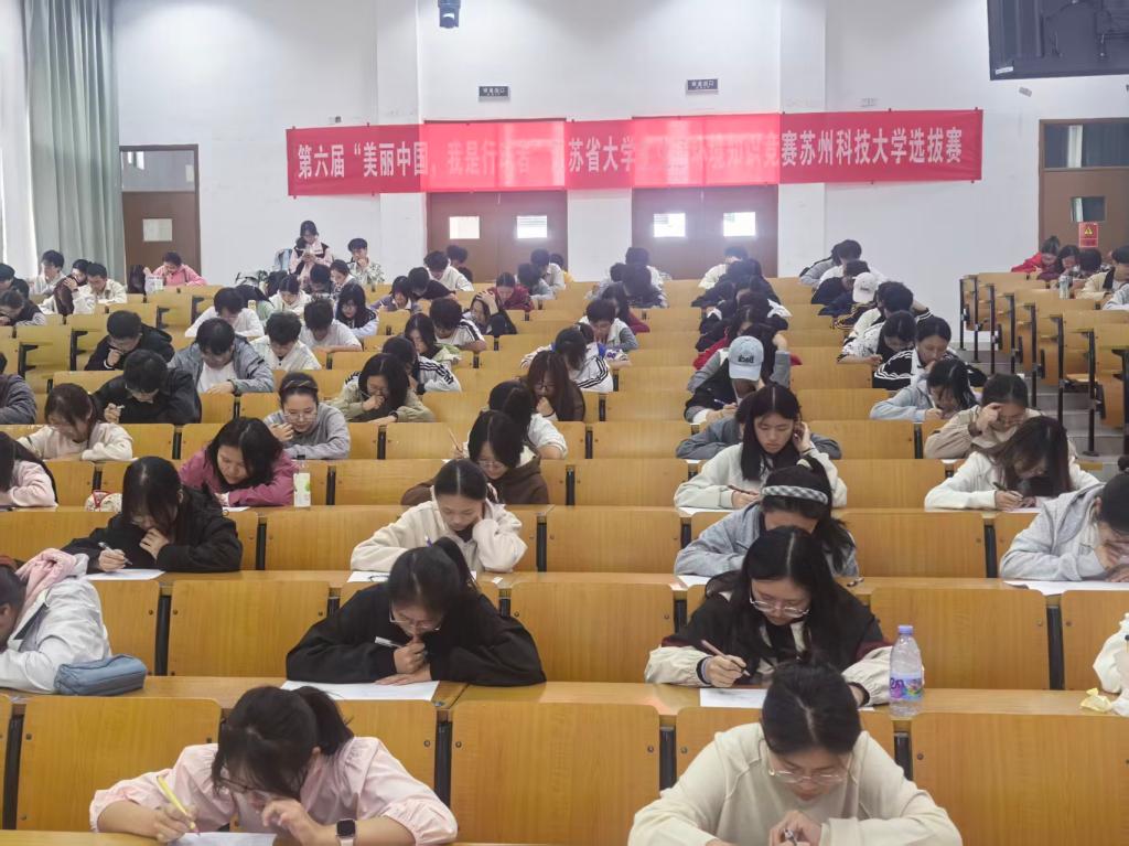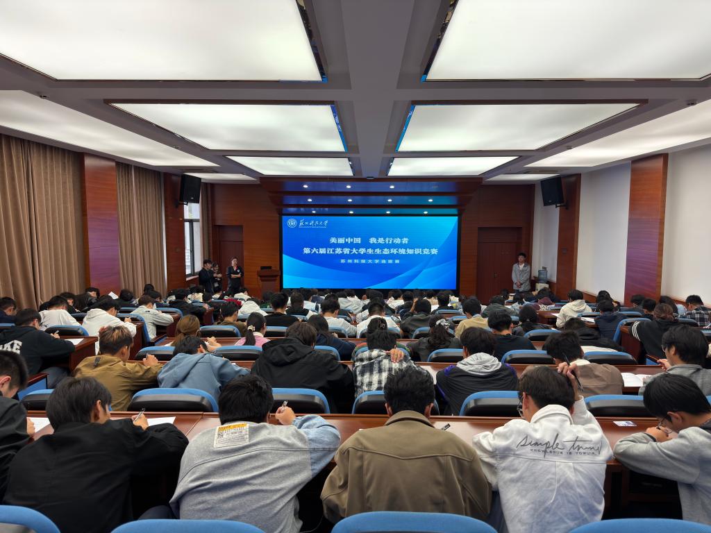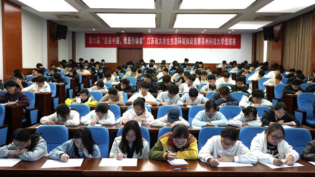 协办的第六届“美丽中国,我是行动者”江苏省大学生生态环境知识竞赛苏州科技大学选拔赛在我校石湖校区顺利开展,来自19个学院的306名学生相聚线下,展开激烈角逐。