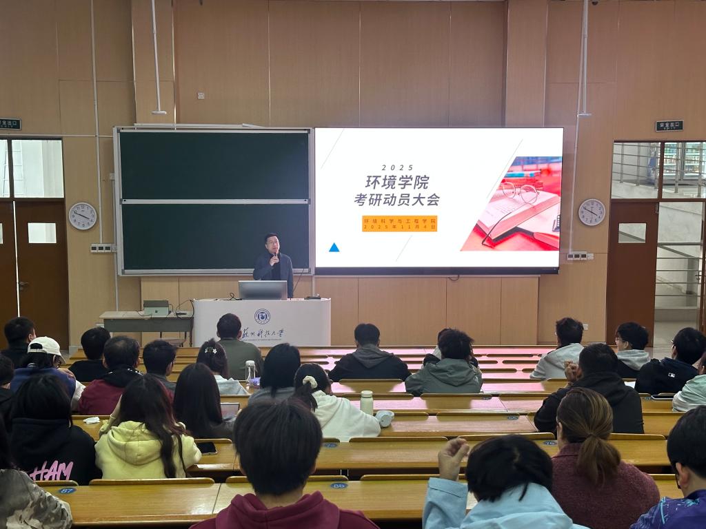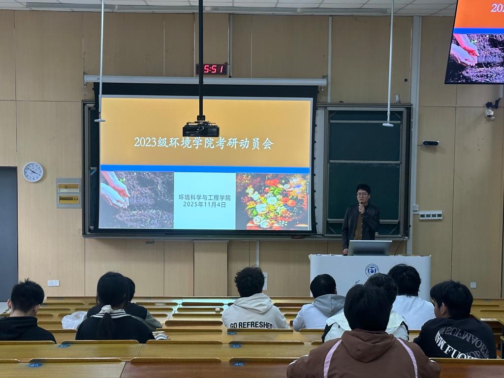 随后,院长助理姜晶围绕“考研规划与专业选择”展开专题分享。他详细分析了近年来环境科学与工程、资源与环境等相关专业的考研分数线、报录比及院校特色,指导同学们结合自身兴趣和实力精准定位报考方向。他特别提醒同学们,要提前了解目标院校的专业课程、复试内容及导师研究方向,做到“知己知彼,百战不殆”。