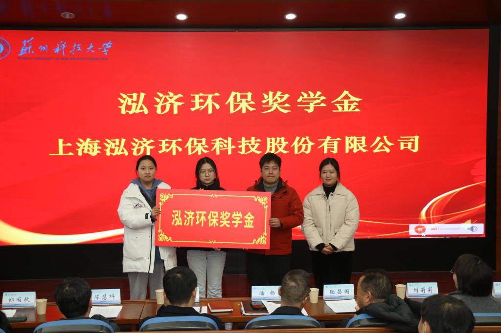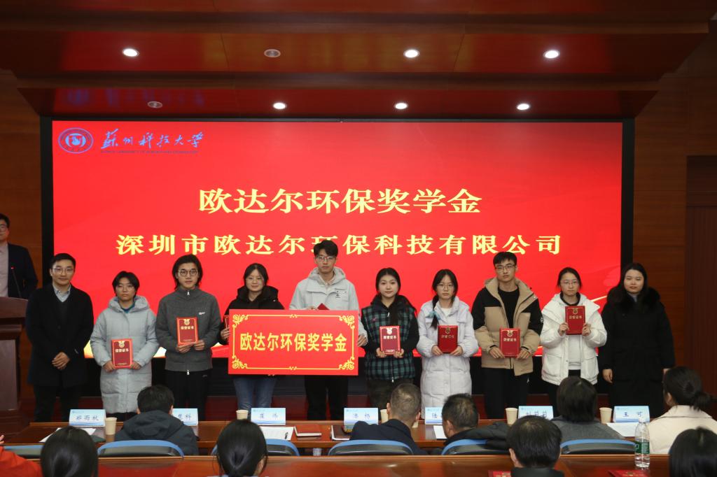举办2025年度企业奖助学金颁奖仪式。苏州零碳时代科技有限公司董事长陆昌国,苏州市东方环境工程有限公司副总经理陈慧科,苏州格力美特实验室科技发展有限公司财务总监刘莉莉,深圳市欧达尔环保科技有限公司行政人事部门郑雨秋,学校学生工作处副处长崔炜,学生工作处学生资助管理中心主任王可,GG扑克