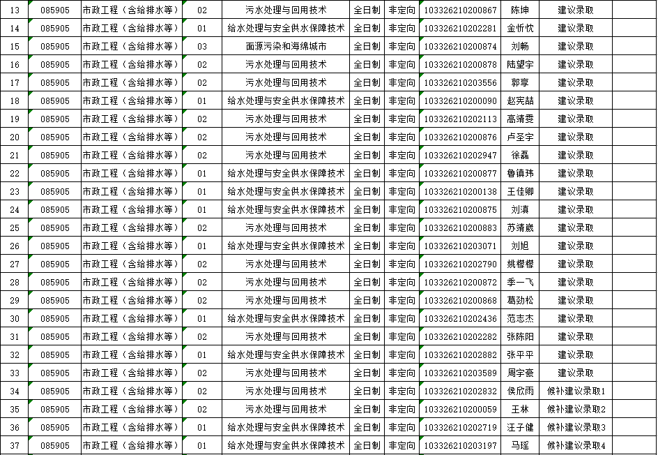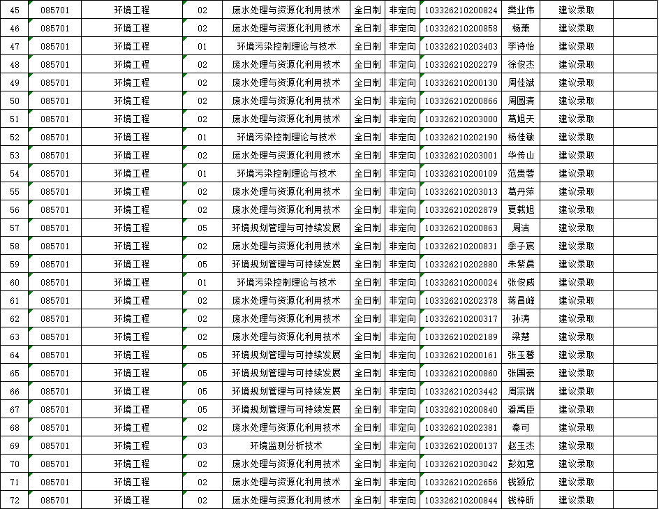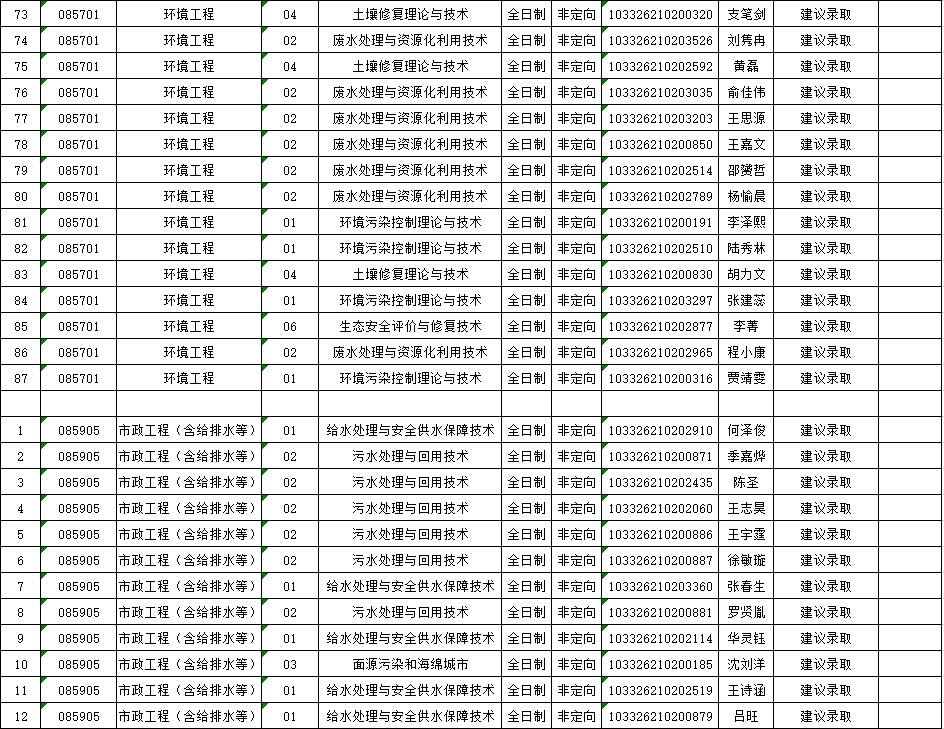 苏州科技大学2026年硕士研究生招生复试一志愿考生建议录取名单